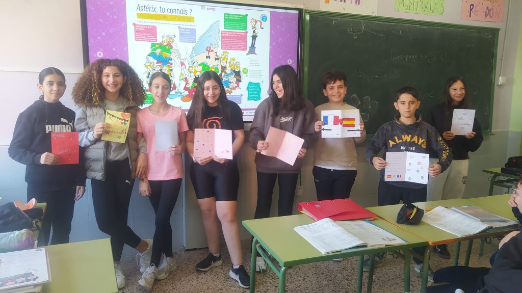 Hoy hemos recibido unas maravillosas cartas de nuestros correspondientes franceses venidas del Collège Jean Moulin de Villefranche-sur-Saône, cerca de Lyon. En las cartas nos contaban todo sobre ellos con una educación impecable: cómo se llaman, qué les gusta, qué odian, dónde viven, cuándo es su cumpleaños y muchas más cosas super interesantes que ya os contaremos. Ahora estamos preparando nuestras cartas.