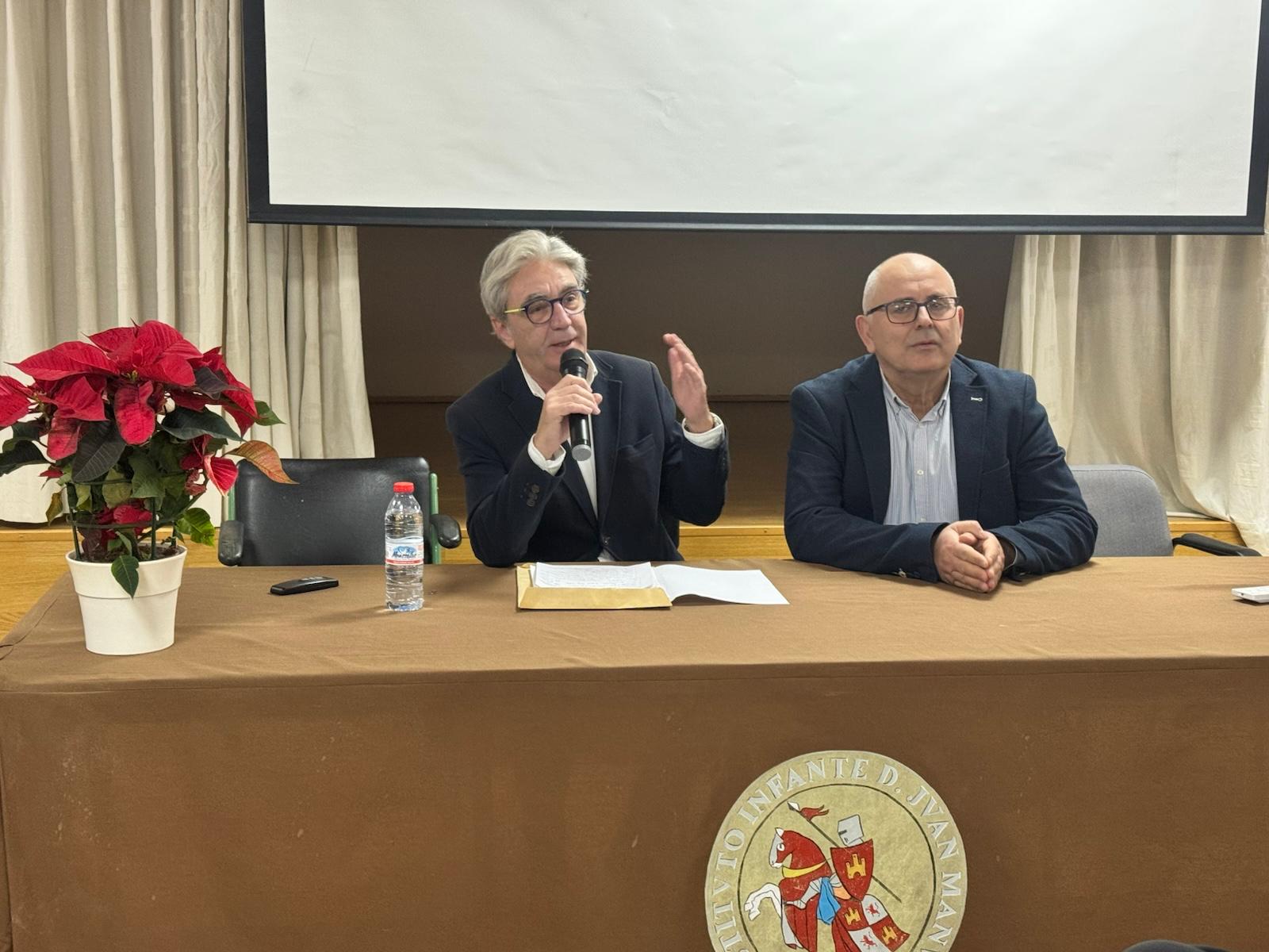 El director del IES Infante, Maximino Perea, ha recibido hoy, viernes, 5 diciembre, a Miguel Ángel Miralles, vicepresidente primero de la Asamblea Regional de Murcia, para celebrar el Día de la Constitución. Ambos han presidido los actos conmemorativos de este 47º aniversario, invitando a la